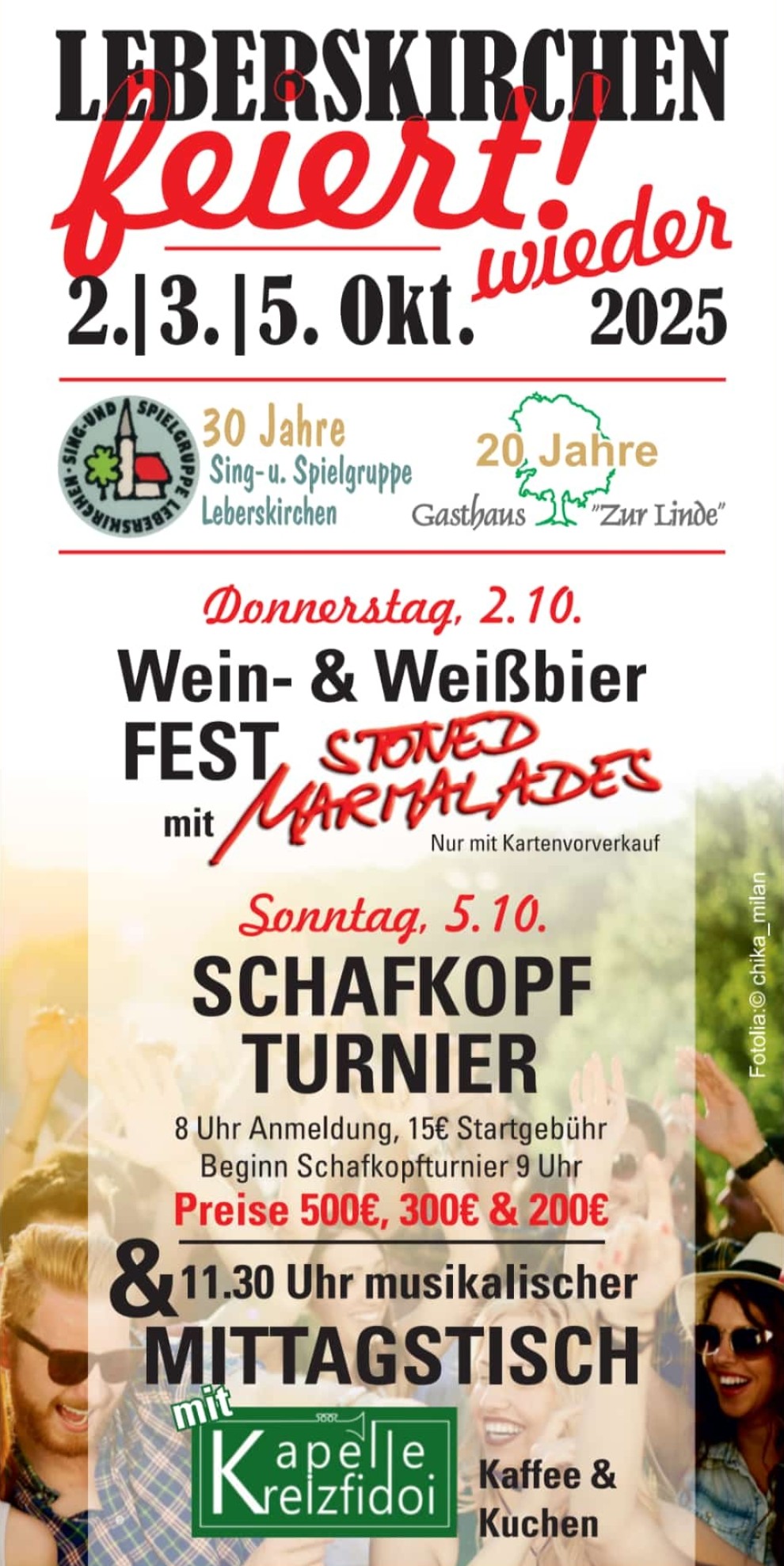 2., 3. + 5.10. Gründungsfest 30 Jahre Sing- und Spielgruppe, 20 Jahre Wirt Gasthaus zur Linde Leberskirchen